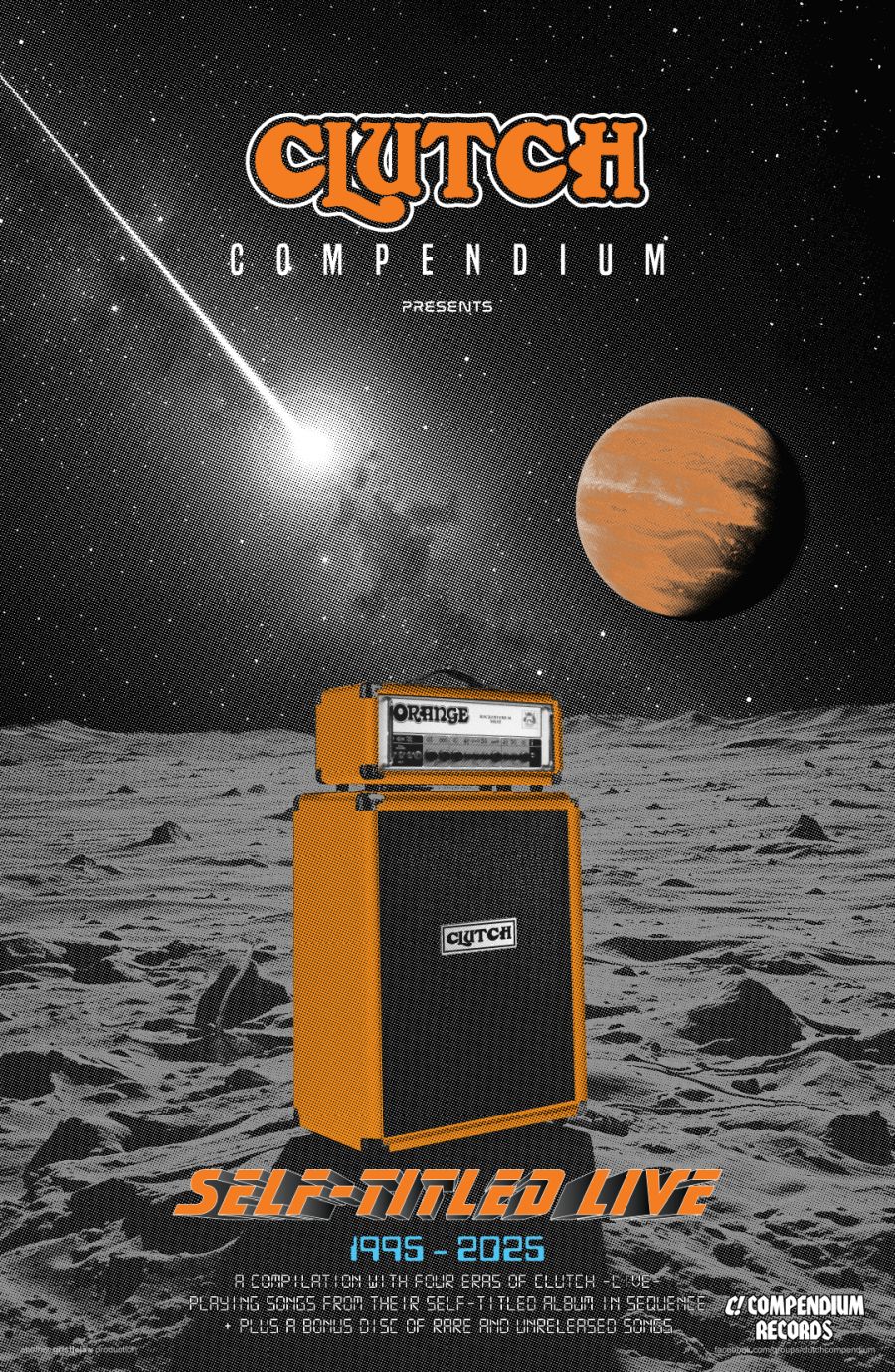 Promotional poster for the Clutch Compendium fanmade live compilation 'Self-Titled Live 1995 - 2025. Celebrating 30 years of Clutch's self-titled album played live. Poster is 11x17", professionally 4-color printed. Limited to 45 hand-numbered copies. Must purchase a mailing tube with your order or the poster will ship folded.